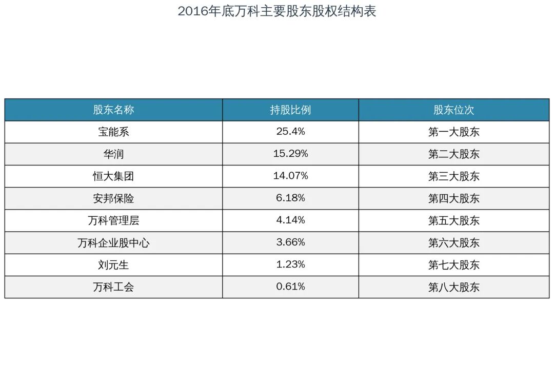 2015年7月,宝能系通过旗下钜盛华、前海人寿等平台,开始在二级市场持续举牌万科,短短数月内,持股比例一路飙升,迅速超越华润,成为万科第一大股东。宝能系的突然入局,彻底打破了万科长期稳定的治理格局,也让长期掌控公司的职业经理人团队首次面临外部控制权的严峻挑战。