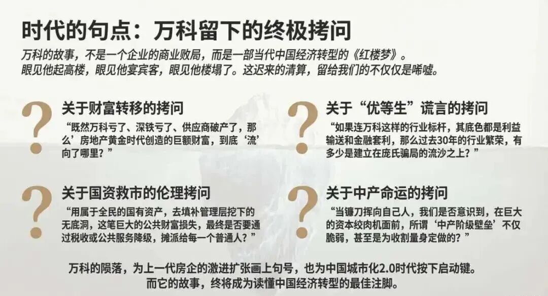 如今,万科的系统性清算仍在继续,千亿亏损的窟窿难以填补,无数受害者的损失无法挽回,这场持续近十年的体外循环资本游戏,最终以管理层覆灭、企业崩塌、多方受损的惨烈结局收场。万科的悲剧,不仅是一家企业的失败,更是中国上市公司治理的深刻教训,唯有坚守股东利益至上,完善权力制衡机制,强化内外部监管,杜绝内部人控制,才能避免更多上市公司重蹈覆辙,守住资本市场的公平与正义,保障企业的长期稳健发展。