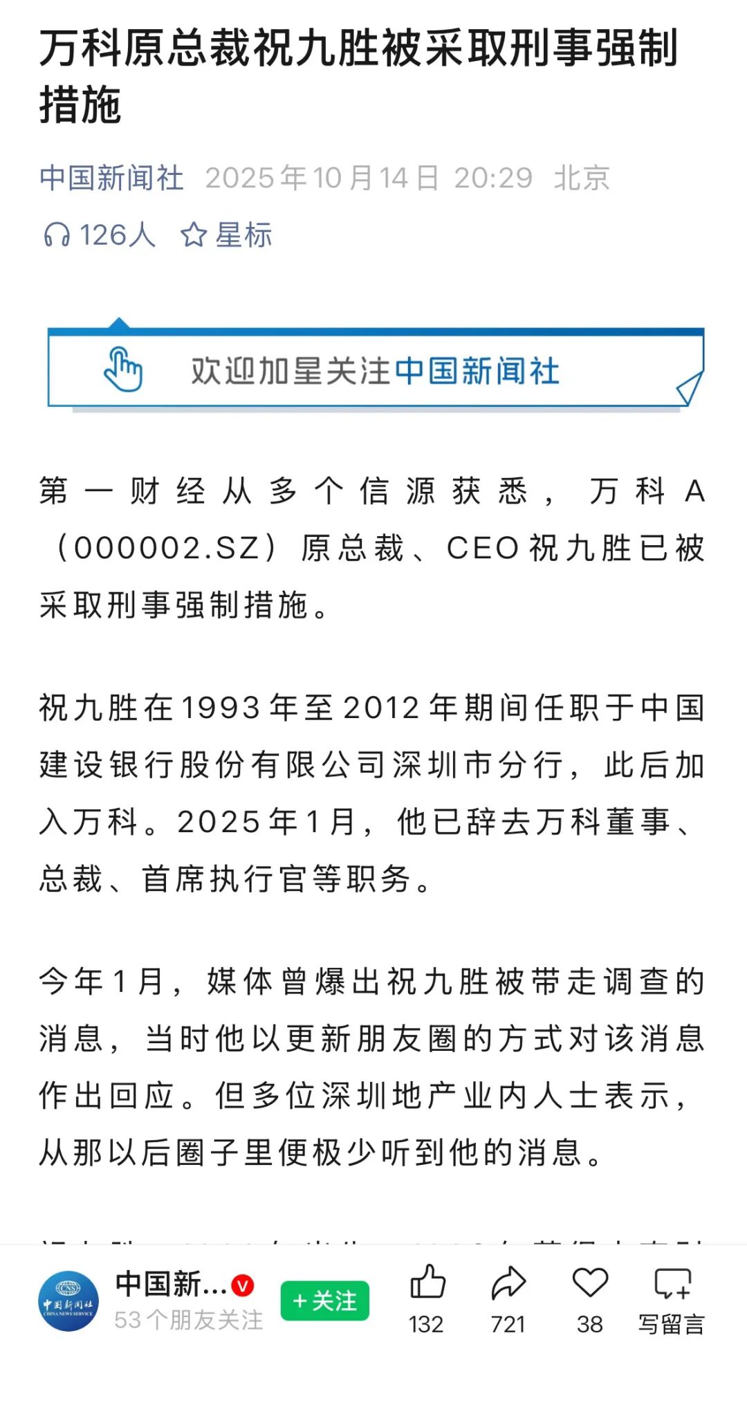 4.违规利益输送:此前在建行任职期间,利用职务便利为万科争取700亿元银行授信,贷款利率仅3.5%,远低于同期市场利率,入职万科后,为相关银行输送业务利益,涉嫌权钱交易。