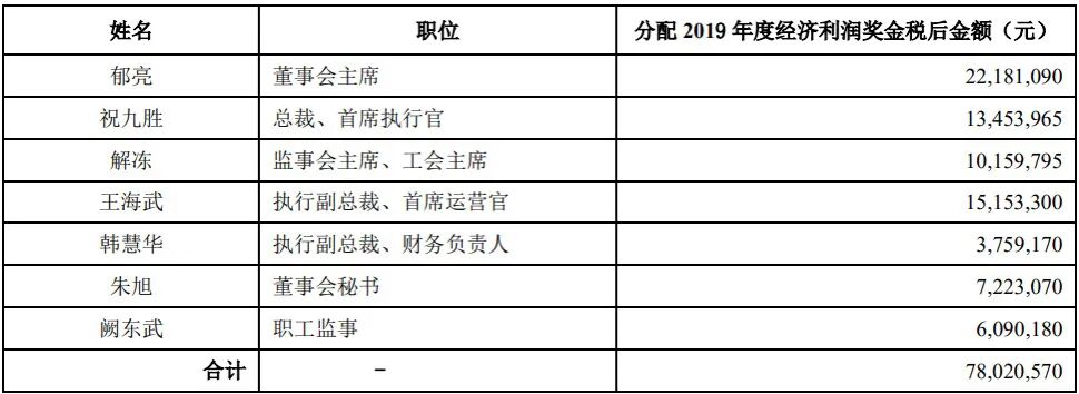 单位:万元(税前现金薪酬,不含股权激励、分红、经济利润奖金)
