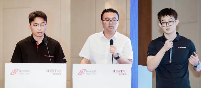 大会现场,神州鲲泰解决方案专家薛强、王瑞福、冯子普依次登场,分别围绕产品体系、行业标杆案例、教育行业专属解决方案进行深度分享,全面展现公司硬核技术实力与成熟落地能力。