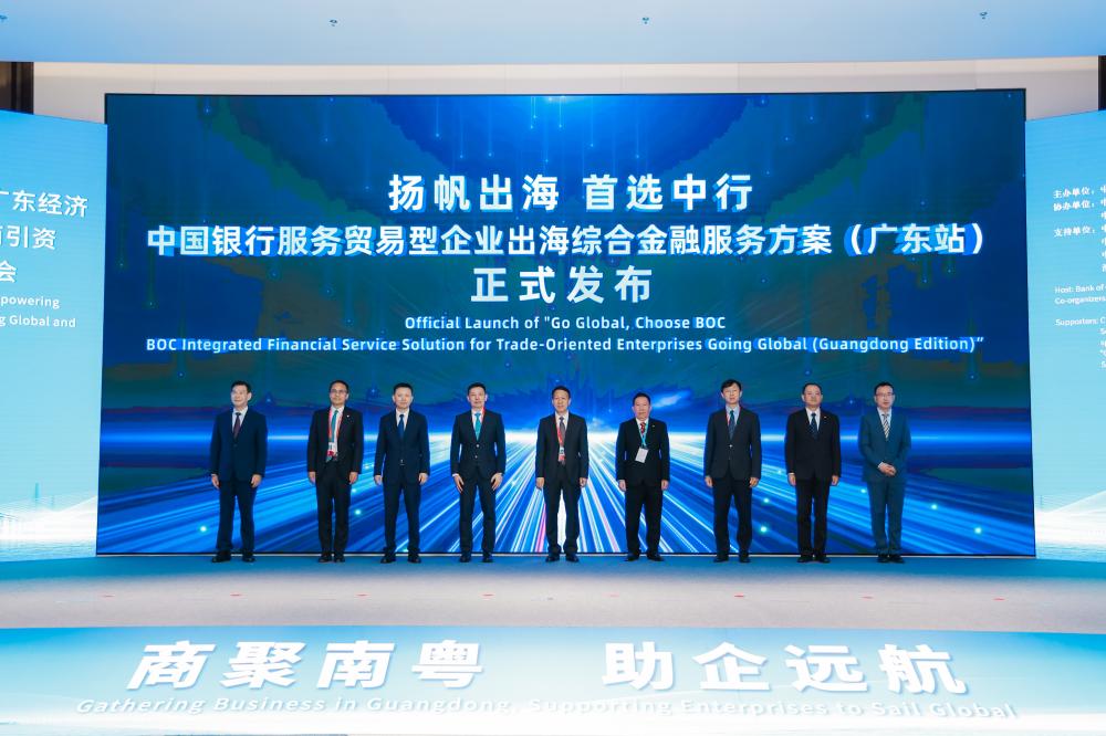 面对企业出海的新阶段、新需求,中国银行在现场发布服务贸易型企业出海综合金融服务方案(广东站)、“出海开户易”专属产品;中国银行广东省分行推出服务企业出海专项行动方案及“出海E行”小程序。从顶层设计方案、特色金融产品、综合服务支持等维度,为企业出海拓市场提供全流程、一站式服务。