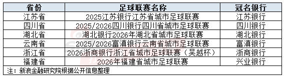 近期,兴业银行成为2026年福建省城市足球联赛独家冠名商。与此同时,浙商银行、湖北银行分别成为2026浙商银行浙江省城市足球联赛(吴越杯)、湖北银行2026年湖北省城市足球联赛总冠名方,四川银行、富滇银行也相继冠名支持本省赛事。事实上,浙江省、福建省均未设立省级城商行,兴业银行、浙商银行的入驻,进一步完善了“金融+体育”的版图布局。