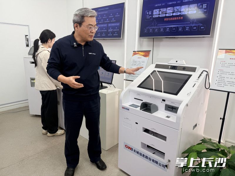 当天,在长城信息展厅,记者也现场体验了这台“数智柜员机”。站在设备前,记者尝试用长沙话说:“我想办张卡。”屏幕随即进入开卡流程,系统语音开始引导:“请将身份证放在读卡区。”整个过程无需点击任何菜单,全程语音交互,流畅得就像有一位隐形柜员坐在对面。