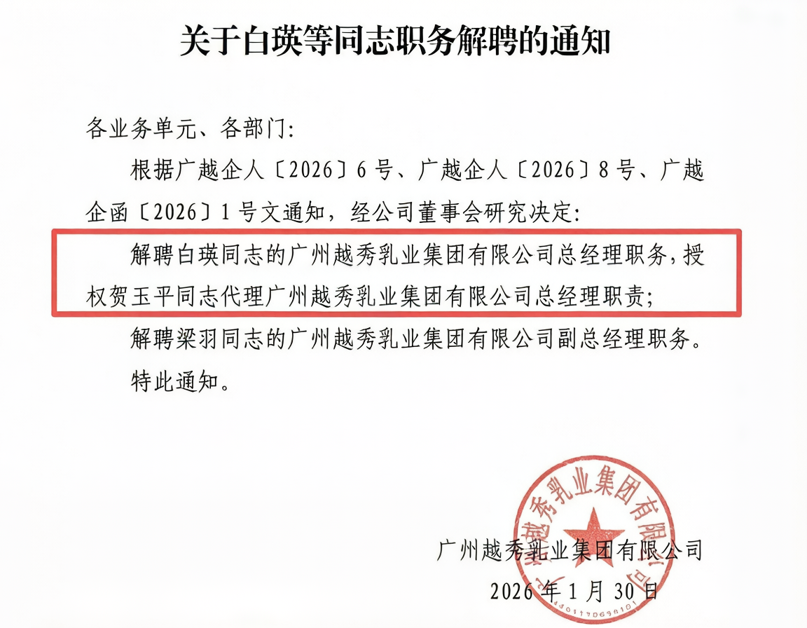 贺玉平没有白瑛式的明星光环,但他深谙越秀的脾性——多年深耕体系内,懂集团的资源禀赋,也懂东北市场的痛点。他的上任,是一个明确的信号:越秀乳业要结束"外聘经理人主导"阶段,重新回归全资股东自主经营。