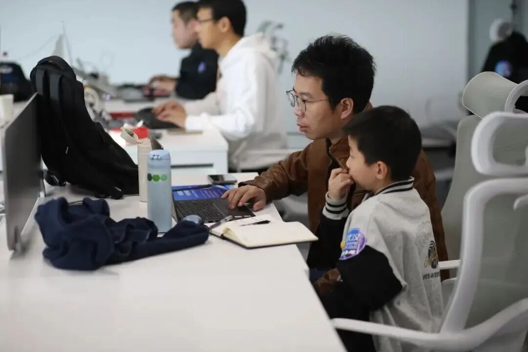 武汉第一届AI+游戏大赛上,一对父子在现场共同开发游戏