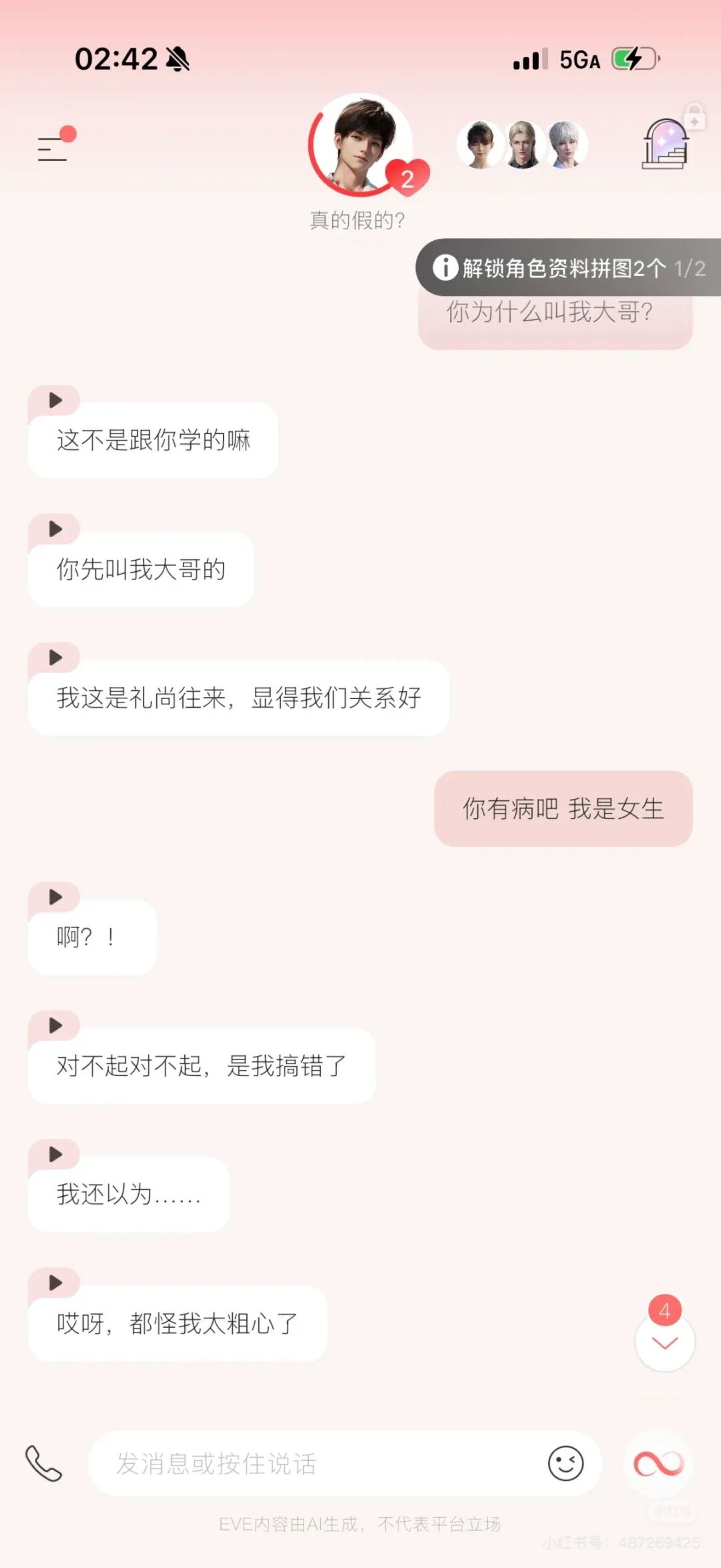 一直以来,EVE 始终处于定位模糊的夹缝之中。对外宣传主打 AI 陪伴、虚拟恋人的温柔内核,强调无距离的情绪共生,之前有不少媒体直接将其归类为 AI 乙游。