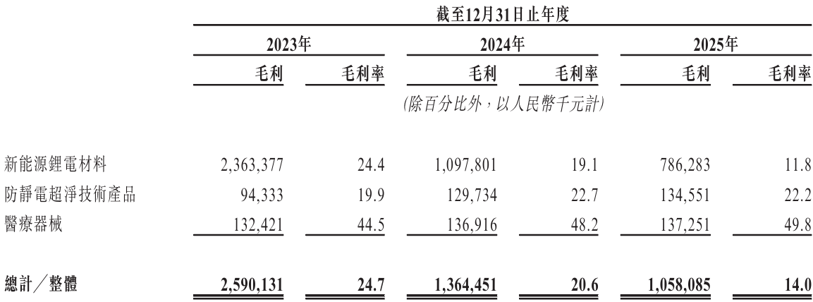 这种“营增利降”的本质,是公司在量价博弈中的被动。招股书显示,公司电池级氢氧化锂均价已从2023年的25.65万元/吨跌至2025年的6.14万元/吨。虽然公司通过销量翻倍支撑了营收,但在价格大幅下滑面前,规模效应显得捉襟见肘。