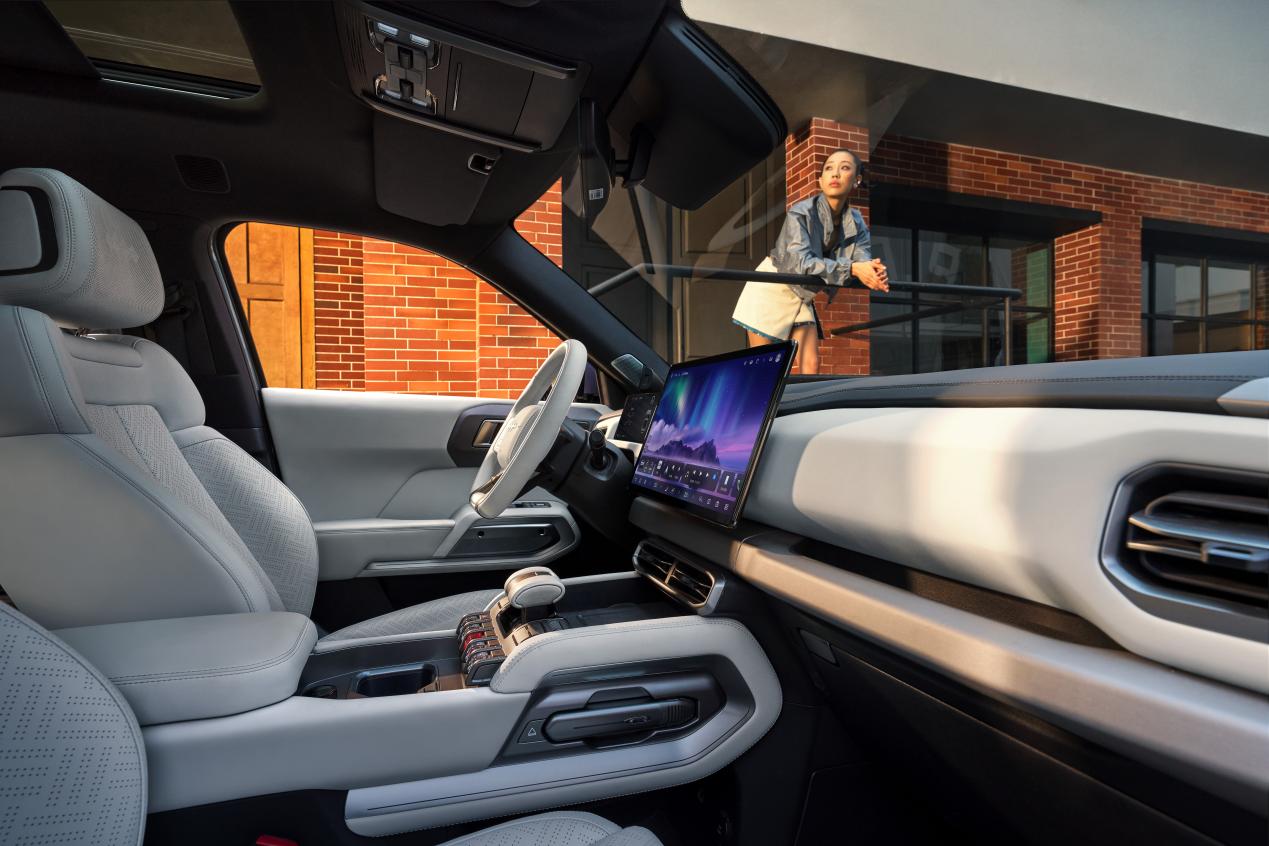 钛3打造星际战车座舱,通过独特科技外观、多样的座舱功能和舒适的配置,为用户提供科技、灵动、舒适的座舱体验。其搭载越级3舱——贴心前舱、舒享座舱、便捷后舱:贴心前舱满足生活经营、运动娱乐、节日惊喜等三大场景;舒享座舱的多功能灵动岛,满足多种车内使用场景;便捷后舱满足生活收纳和百变工具,带给用户丰富多元的用车体验。