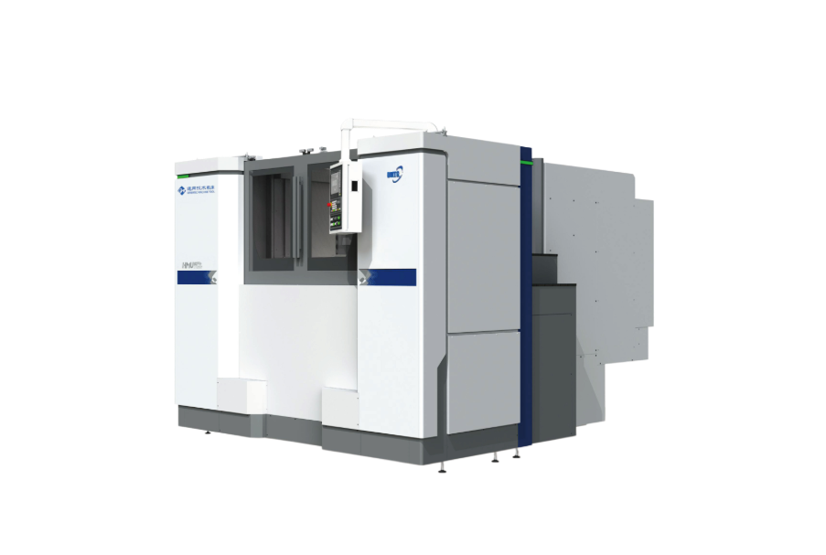 该产品适用于汽车、模具、阀门、机械制造等行业的箱体、壳体、盘类、异形零件的加工,可实现零件一次装夹自动完成四个面的铣、镗、钻、扩、铰、攻丝的多工序加工。产品采用正T型整体床身,保证机床高刚性;采用丝杠中空冷却和主轴温度补偿技术,使机床定位精度达到0.006mm,重复定位精度0.004mm;采用油压提升与凸轮联动的工作台交换技术,交换时间12.5s;采用凸轮联动换刀技术,换刀时间2.5s。