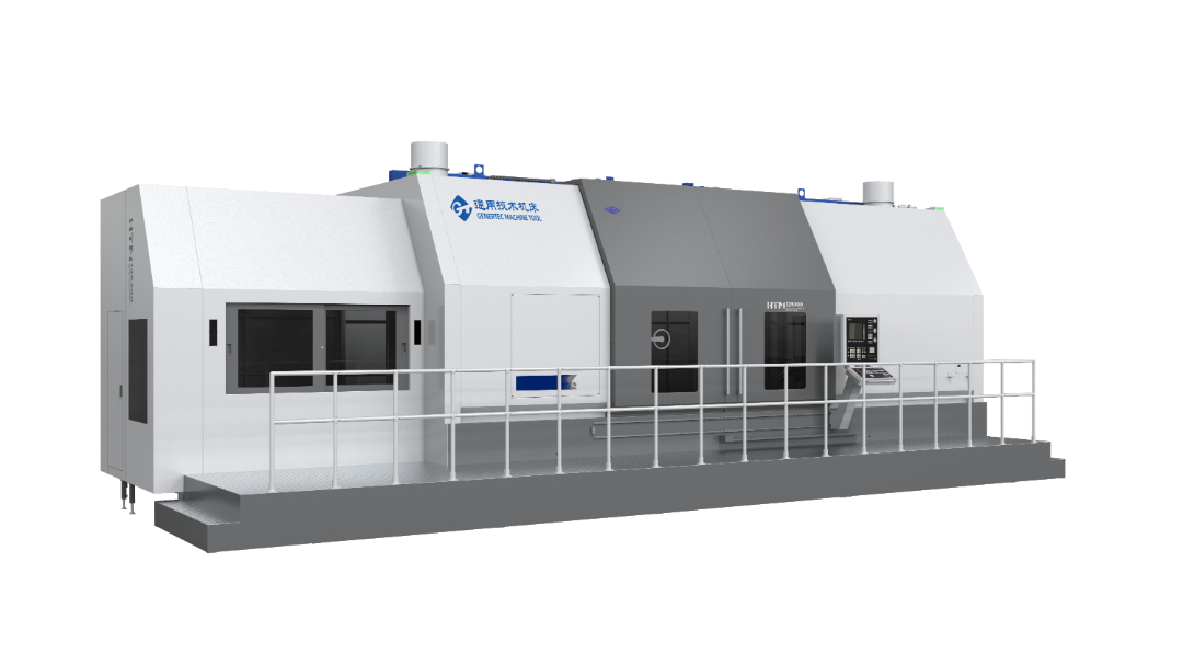 该产品主要用于通用机械、阀体、燃油车等行业的缸体、缸盖、阀体、曲轴等零件加工,采用倒T型整体铸造床身,Y轴电机座与立柱一体铸造,直线轴装备重载滚柱导轨,有效保障整机高刚性;采用热对称结构主轴箱、自制高精转台以及精密滚珠丝杠,保障整机高可靠性。产品可实现零件一次装夹自动完成四个面的铣、镗、钻、扩、铰、攻丝的多工序加工。