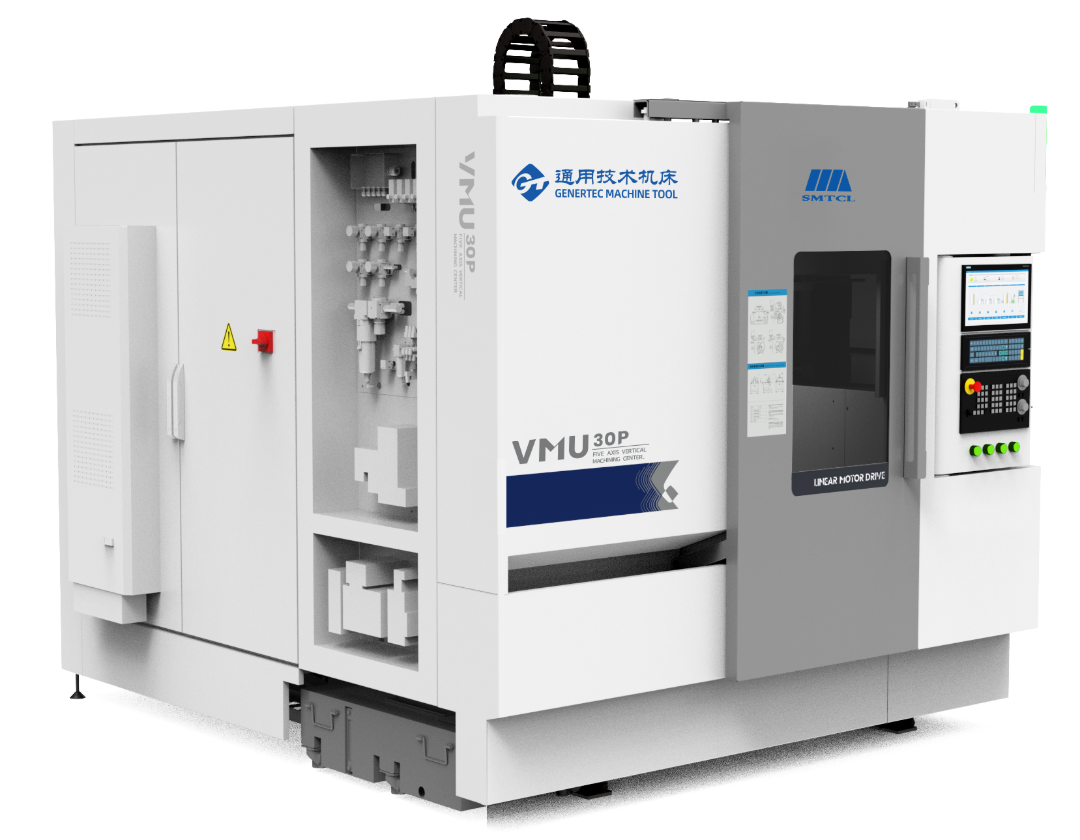 该产品适用于铝合金薄壁结构件的高效精密加工,具有高效率、高精度、响应快的特点,满足中小型铝合金结构件的多品种、中小批量、高精度加工需求。产品采用单摆台+单摆头的分离轴五轴结构布局,有效解决热源集中问题;关键核心功能部件均为自主研发,自主可控;采用模块化设计,预留机器人自动换刀、托盘自动交换、真空自动通断等接口,满足多种加工及组线需求。整机结构紧凑,对比同规格产品,占地更小,可实现有限空间内多种形式的成组连线应用。