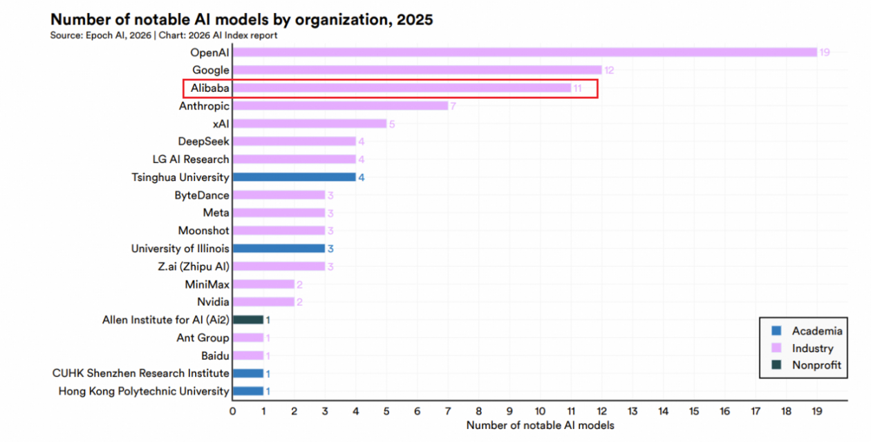 斯坦福报告:阿里位列2025年AI贡献榜第三名