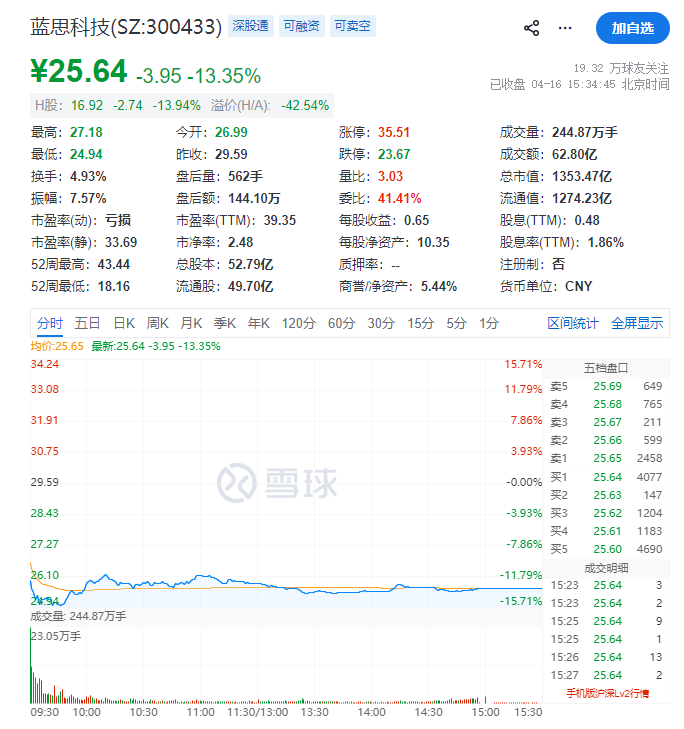 这个业绩一出来,吓得蓝思科技A股和H股的股价今天直接跌了超13个点。