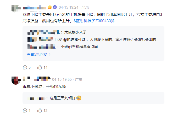 蓝思科技一季度营收下跌17%,估计就跟小米有关。