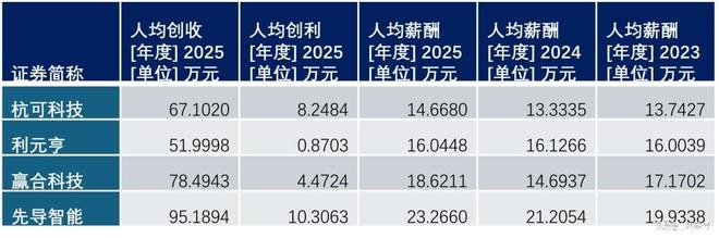 另外有一个数据,也能说明一些问题。杭可科技竟然是同行锂电设备企业中人均薪酬最低的一家,人均年薪只有14.67万元,而先导智能则高达23.27万元。