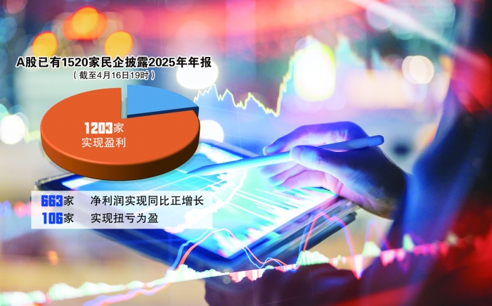 A股民营上市公司正展现出强劲的增长韧性与发展活力。截至4月16日19时,A股已有1520家民营企业披露2025年年报,其中1203家实现盈利,占比接近八成。机械设备、电子、电力设备、医药生物、基础化工等领域盈利公司数均破百家,多家龙头公司业绩再创新高。