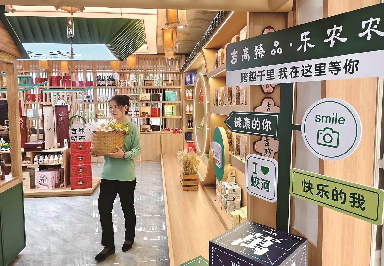 在拉法山服务区吉林特产馆,游客不下高速就能一站式购齐吉林甄选产品,让吉林味道随旅途飘香。