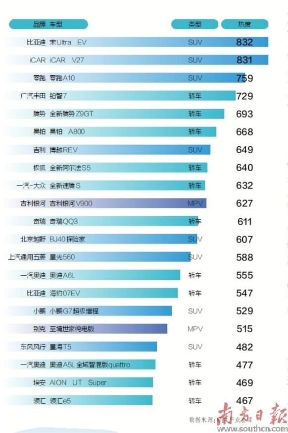 通过《南方汽车热榜》可以看出,在汽车行业竞争逻辑的转变进程中,行业正在全力改变依托价格的简单竞争,更多从品牌、从定位、从服务等维度,将产品做出“不一样”。这也给车企提出全新要求,产品不能再靠“数量堆”,还要靠“精品破”,竞争的门槛继续攀升。