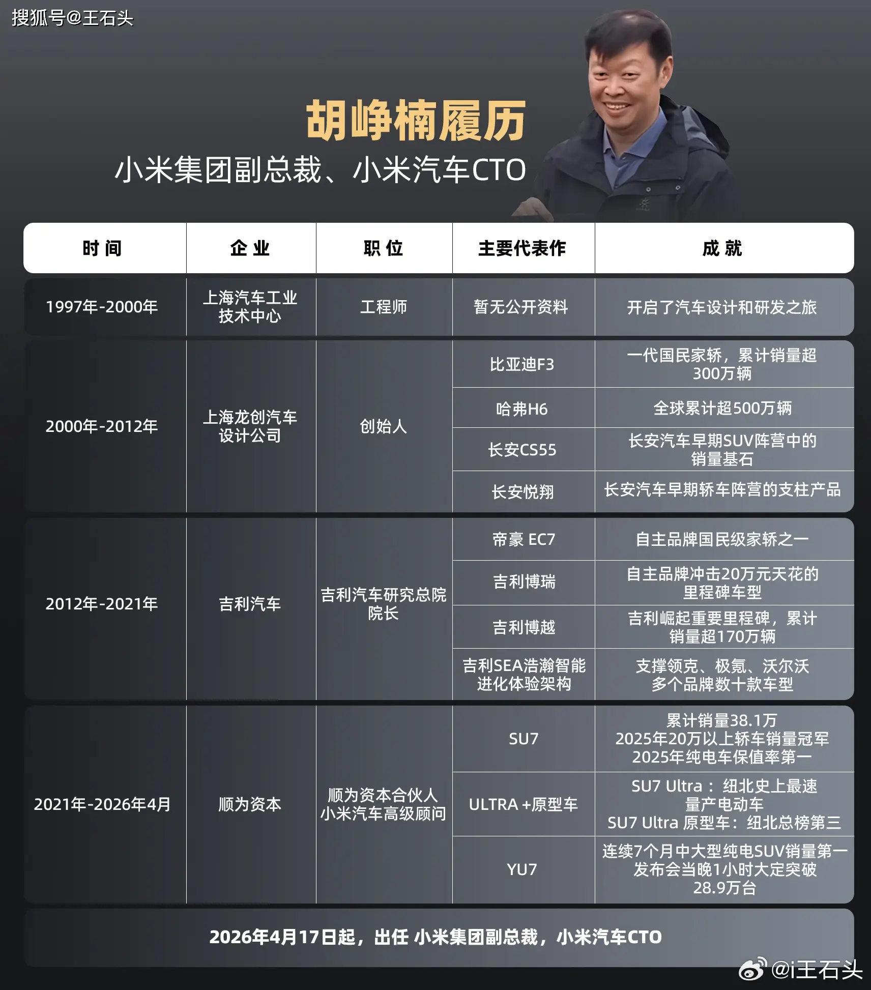 小米汽车最强天团集结,胡峥楠到任CTO,第二阶段正式开启!