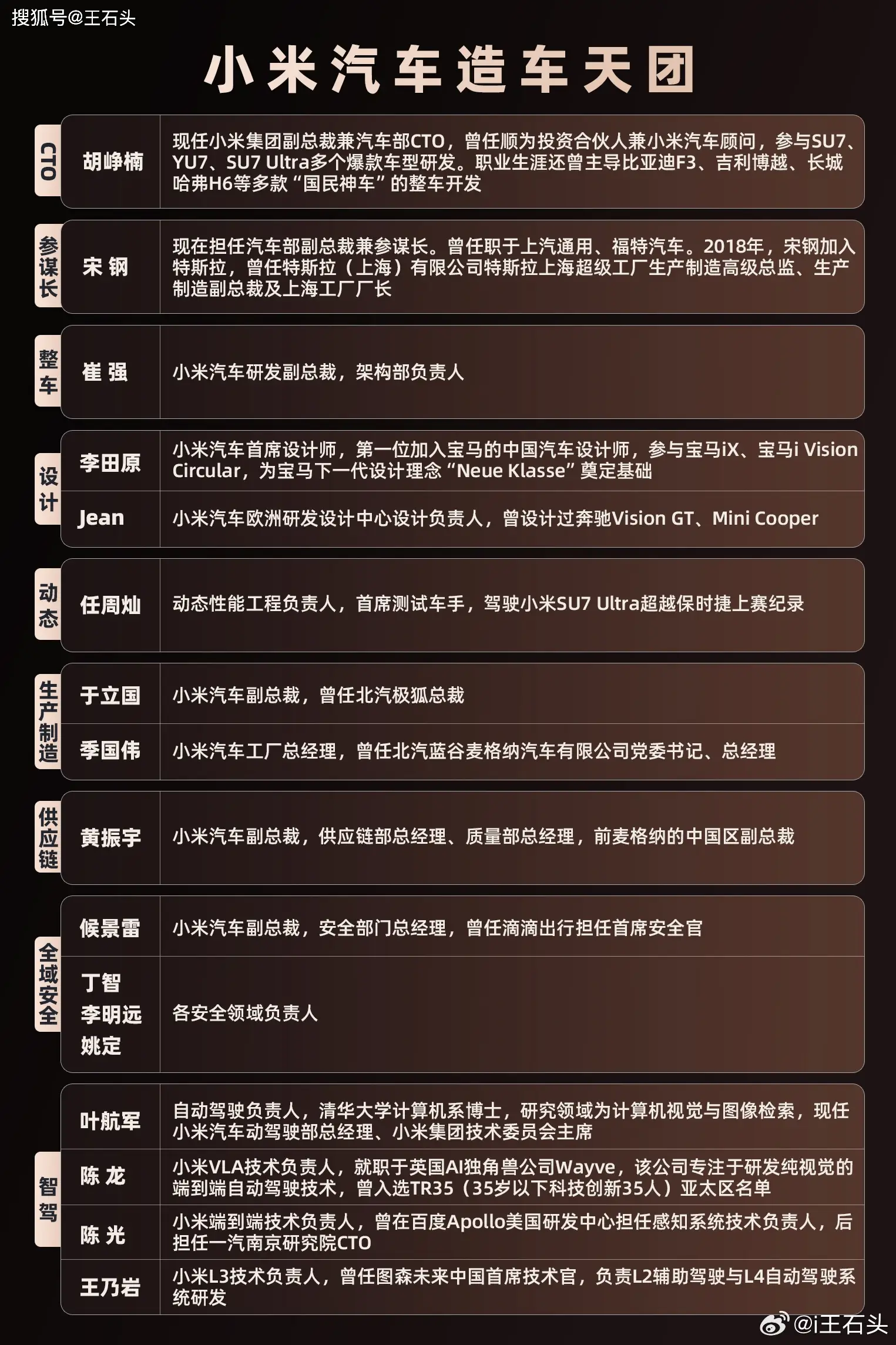 现在,小米汽车已经组成了业内公认的“最强造车天团”。