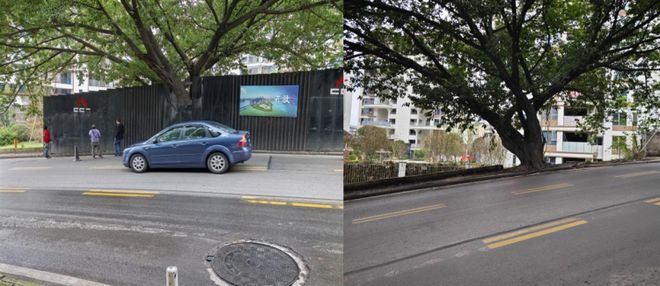 拆除围挡前(左图)及拆除围挡后(右图)。