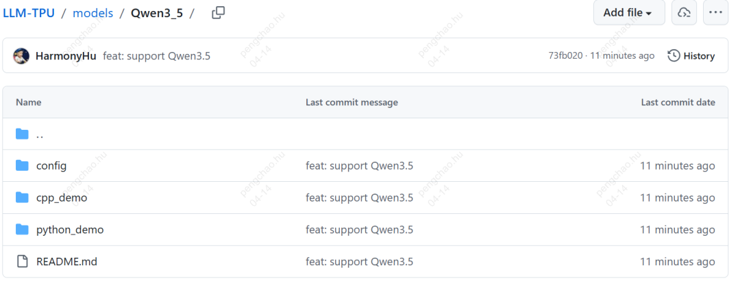 访问 LLM-TPU Qwen3_5 目录(附录链接(4)),有 Python 和 C++两种 Demo: