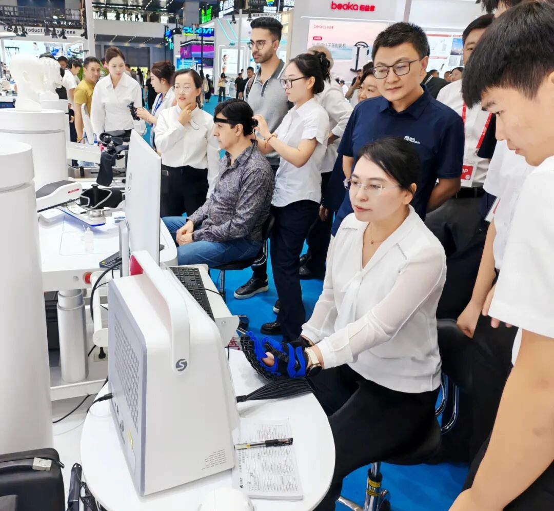 翔宇医疗是中国康复医疗器械领域的研发引领型企业,参与多项国家和行业标准的制定,是国内将脑机接口技术应用于康复医疗器械领域的核心企业之一,拥有专利3000多项。在翔宇医疗展区,王婧楠现场体验了其先进的手部康复理疗设备,亲身感受智能化、人性化医疗器械带来的便捷与高效。了解到企业正在部署全国的生产和销售市场,王婧楠介绍了高新区发展医疗器械方面决心和优势,希望企业来高新区共同创业,共谋发展。