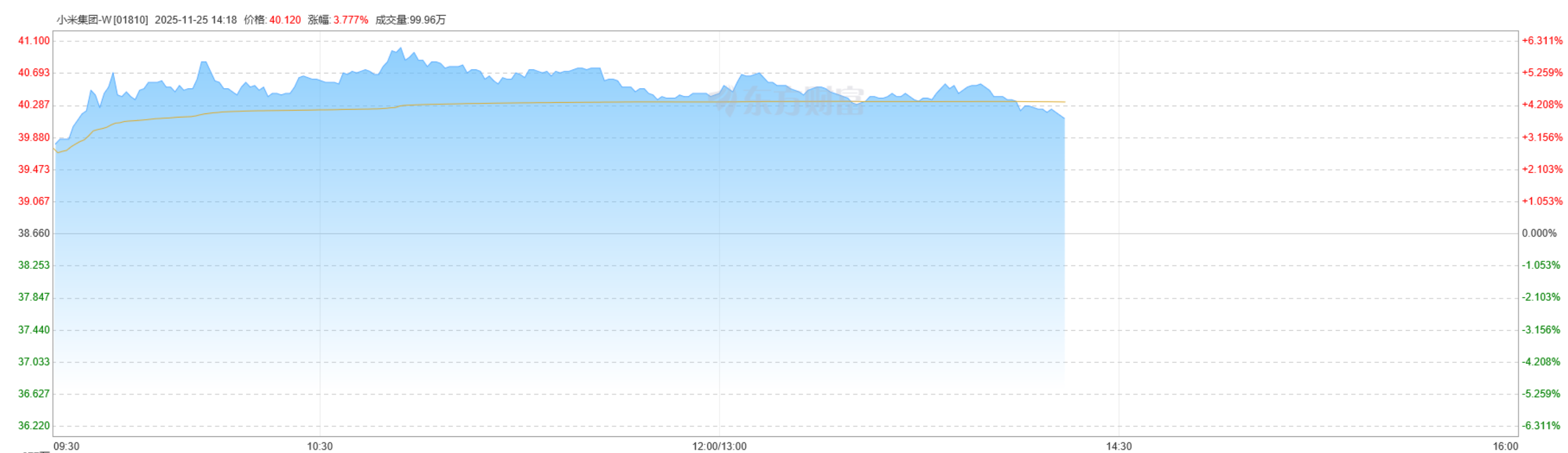 11月25日, 小米 集团港股迎来反弹。截至收盘涨超4%,股价重回40港元上方。