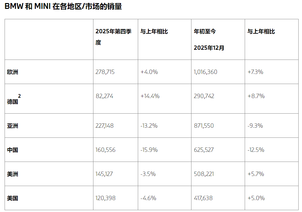 2025年,宝马全球销量实现同比微增,电动化转型见到了明显成效,各大地区销量都实现了攀升……除了亚洲。