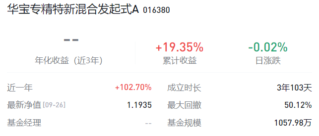 以华宝专精特新混合发起式A为例,截至2025年9月26日近一年收益涨幅达102.70%,却始终未能吸引足量外部资金,规模徘徊于1500万元以下,最终因规模长期低迷而清盘。