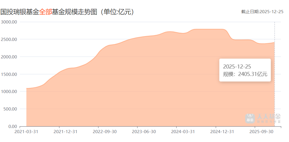 目光回到国投瑞银,产品结构亦有优化急迫性。天天基金网数据显示,截至2025年12月25日总规模为2405.31亿元,较同年三季度的2786.16亿元不增反降。其中,指数型基金规模仅有68.04亿元,与行业的万马奔腾形成鲜明对比。数据显示,截至2025年12月31日,国内ETF市场总规模破6万亿大关。其中规模最大的产品类型为股票型ETF,占比达63.8%。