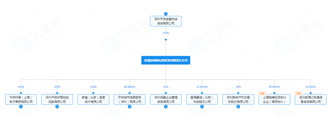 深圳前海联礼阳投资有限责任公司为深圳平安金融科技咨询有限公司旗下100%持股企业,注册资本33亿元,控制平安城市信息服务(深圳)有限公司、深圳平安好医检验控股有限公司等多家公司。