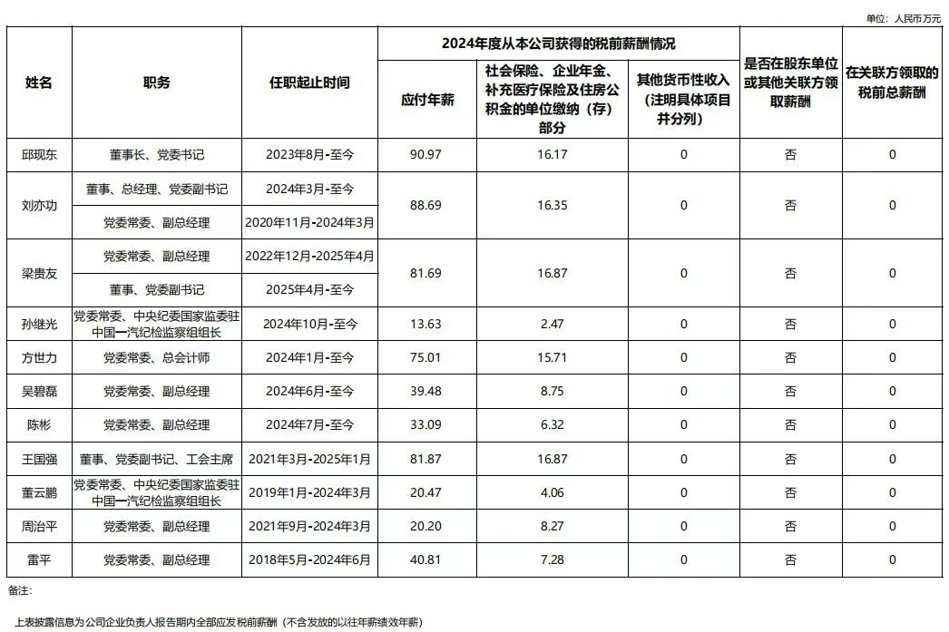 一汽、东风高管薪酬披露,2026年业绩成关键