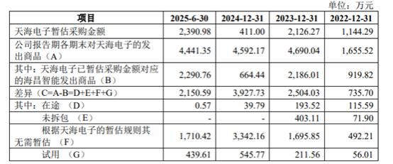 记者注意到,两家公司关联交易总额、发出商品余额等数据长期存在巨大差异,2024年末海昌智能对天海电子发出商品达4592万元,而天海电子仅暂估411万元;剥离三年后双方仍存在互相代发工资的情况,且双方披露的代发金额存在差异,这也让市场对其资产剥离的实质有效性产生质疑。