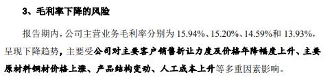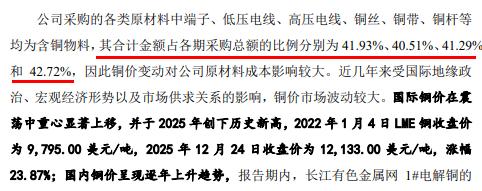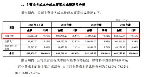 据招股书显示,毛利率下滑主要源于核心原材料成本高企,公司直接材料成本占主营业务成本比例高达78%,其中含铜物料采购额占比超40%,报告期内1#电解铜价格上涨显著推高生产成本,而铜价联动机制的成本传导效果不佳,进一步加剧盈利压力。