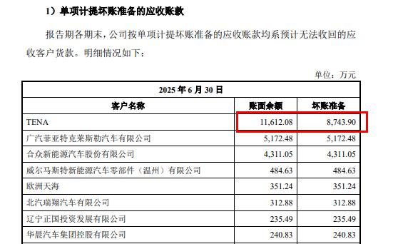 招股书显示,2022年至2024年,天海电子曾作为国际化桥头堡的美国子公司Tianhai Electric North America(TENA)累计拖欠1.1亿元款项,截至2025年6月末,8743.9万元已做坏账准备,在此期间TENA被先后转卖给美国和日本汽车零部件巨头。