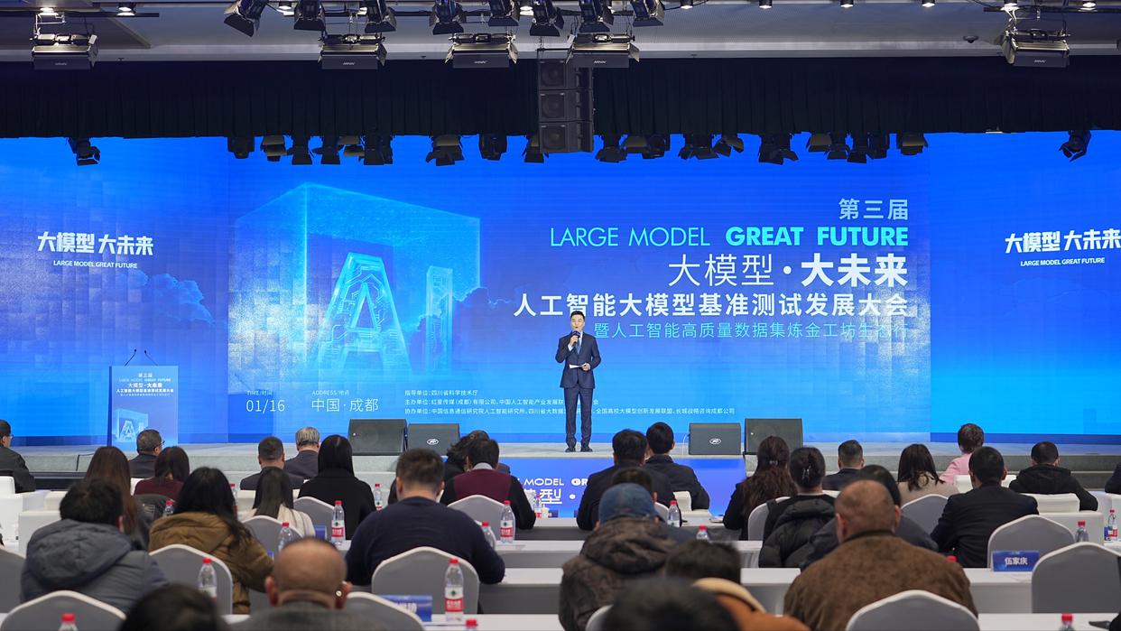 1月16日,由成都传媒产业集团旗下红星传媒联合中国人工智能产业发展联盟数据委员会主办的第三届“大模型大未来”人工智能大模型基准测试发展大会暨人工智能高质量数据集炼金工坊生态行在成都高新区举办。来自清华大学、天津大学、中国信通院人工智能研究所等知名高校和研究机构的专家学者进行了主题分享,现场汇聚近百家企业代表,共计200余名与会者交流了人工智能领域的前沿科技并探讨场景落地路径。