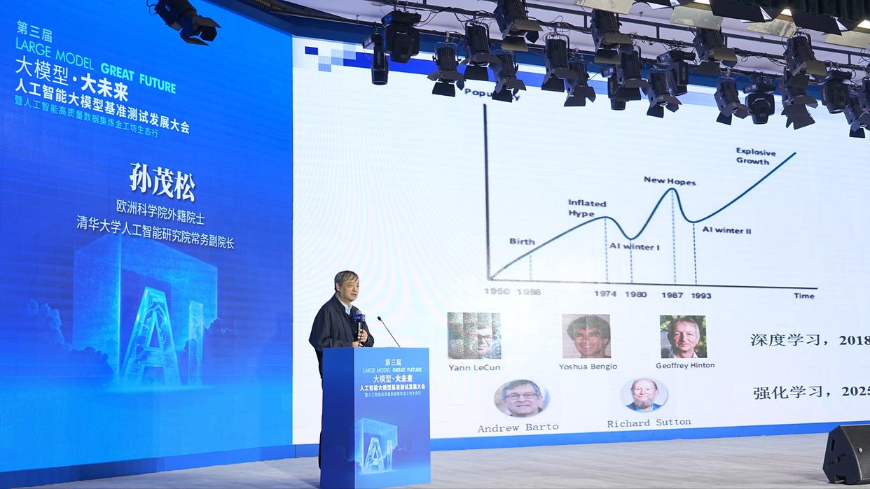 欧洲科学院外籍院士、清华大学人工智能研究院常务副院长孙茂松将“AI进入深度学习时代”和“AI进入预训练模型和大模型时代”视为人工智能技术发展的两次里程碑,他指出:大模型不是“灵丹妙药”,需与专业领域“融合互促”。孙茂松强调,人工智能应用要“致广大而尽精微”:既要把握AI宏观潜力,又需在具体场景做到精益求精。他指出,大模型在文本、代码、多模态领域进展迅速,但在具身智能和空间智能方面仍面临挑战,“人工智能不是魔法,而是需要专业领域深度合作才能发挥最大价值”。