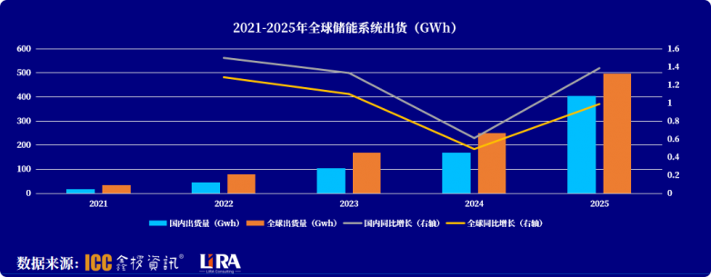 ICC鑫椤资讯:2025年全球储能电池出货640GWh,储能系统出货498GWh