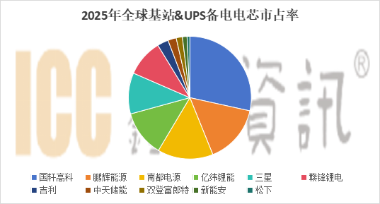 基站备电&数据中心UPS:2025年基站备电&数据中心UPS电池出货12.3GWh,同比下滑22%。由于2025年5G基站建设进度放缓,加上锂电的渗透率没有得到进一步的提升。基站备电&数据中心UPS领域已经形成一超多强的市场竞争格局,国轩高科通过绑定华为,每年有较稳定的出货量级,市占率达28%以上,鹏辉、南都、亿纬、三星市占率均超10%以上。