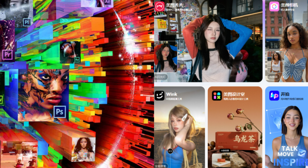 AI原生创意工具,正在以更轻盈、更智能的方式,蚕食Adobe的专业壁垒、美图的低门槛属性。