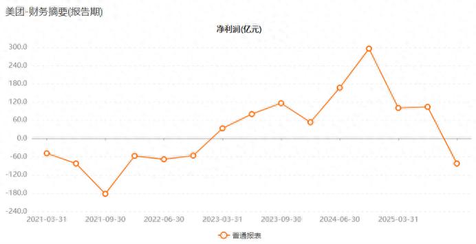 图:美团2021年Q1至2025年Q3净利润变化趋势