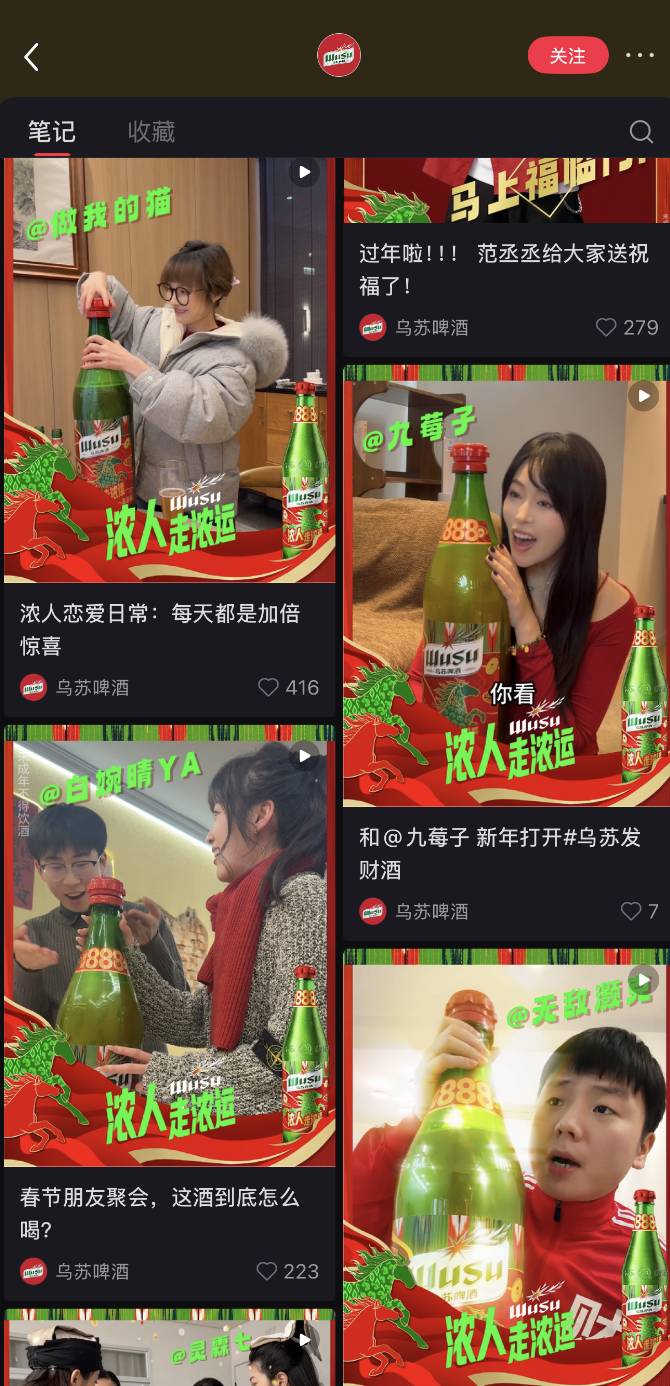 乌苏啤酒小红书账号截图