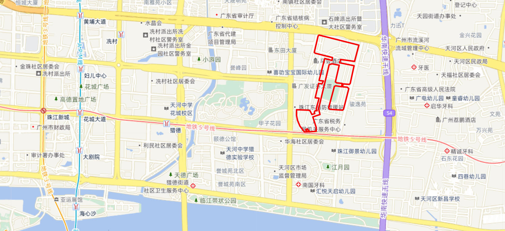 天河区黄埔大道以南、马场路以东地块(马场1期地块)位于黄埔大道以南、马场路以东。周边有金马花园、骏逸苑、珠光新城御景等居住小区,附近自珠江公园、暨南大学、暨南大学附属第一医院、广州长安医院、领展广场等服务设施。