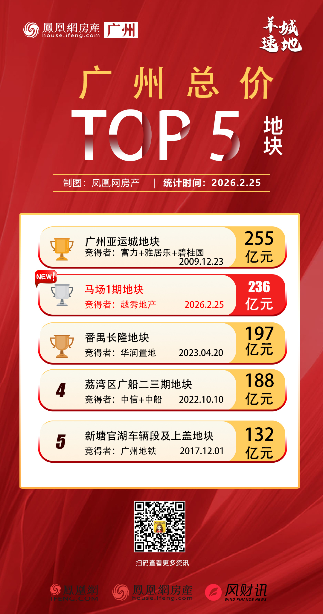 广州土拍总价TOP 2!楼面单价新王! 越秀地产总价236亿元竞得天河区马场1期地块