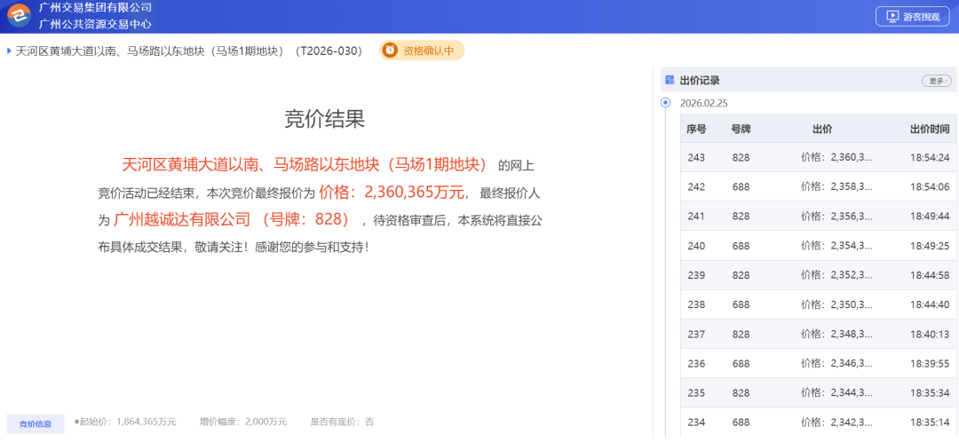 紧接着,华润、越秀、广州建筑、广州城投、珠江实业也相继出价。