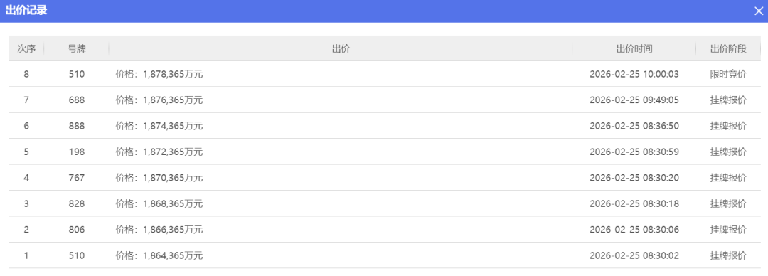 总共8家房企报名,但招商临时缺席,全程没有出价。