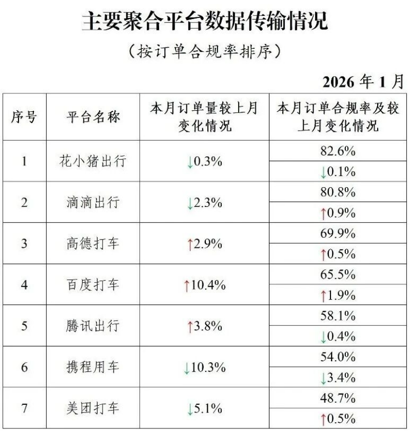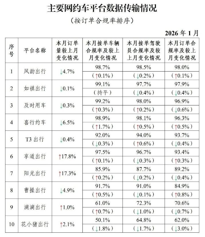交通运输部1月网约车数据:聚合平台高德打车 百度打车 腾讯出行等合规率靠后