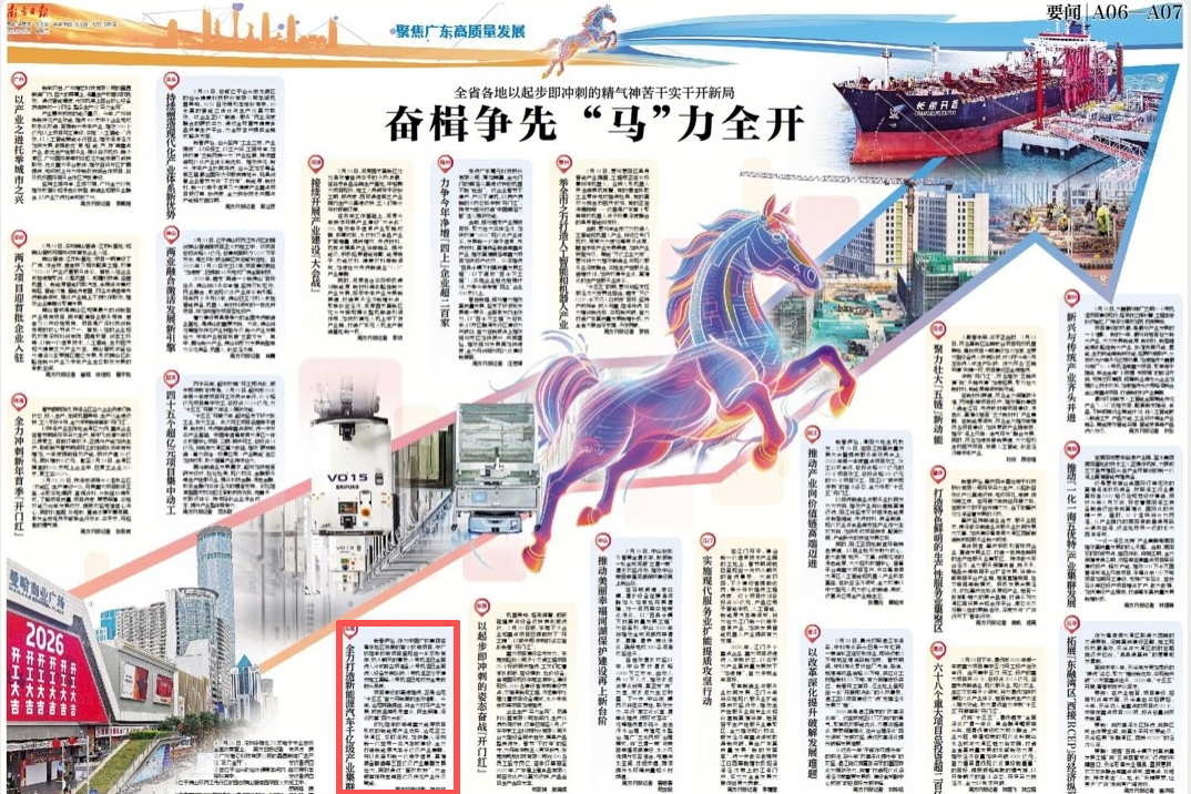 项目建设的高速推进,正是汕尾“十五五”奋力开新局的生动缩影。今年,汕尾明确提出,将全力打好产业发展、城市品牌形象宣介、民生保障、深化改革“四大会战”。依托陆丰核电等重大能源项目形成的新能源产业优势,汕尾正立足湾区、紧盯深圳,加快融入深圳新一代世界一流汽车城建设,全力打造新能源汽车千亿级产业集群,并以此牵引新一代电子信息、高端装备制造等五百亿级产业集群发展壮大,同时通过“智改数转”,为金银首饰珠宝等百亿级传统产业升级赋能。
